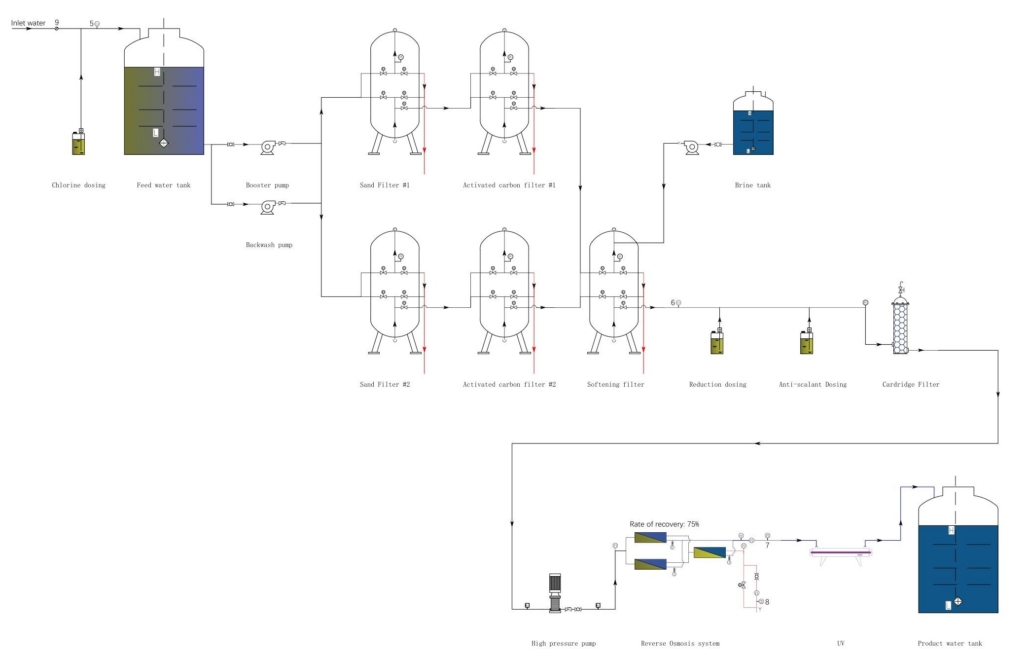 Adopting “Pretreatment + Reverse Osmosis” core process, the specific flow is as follows: